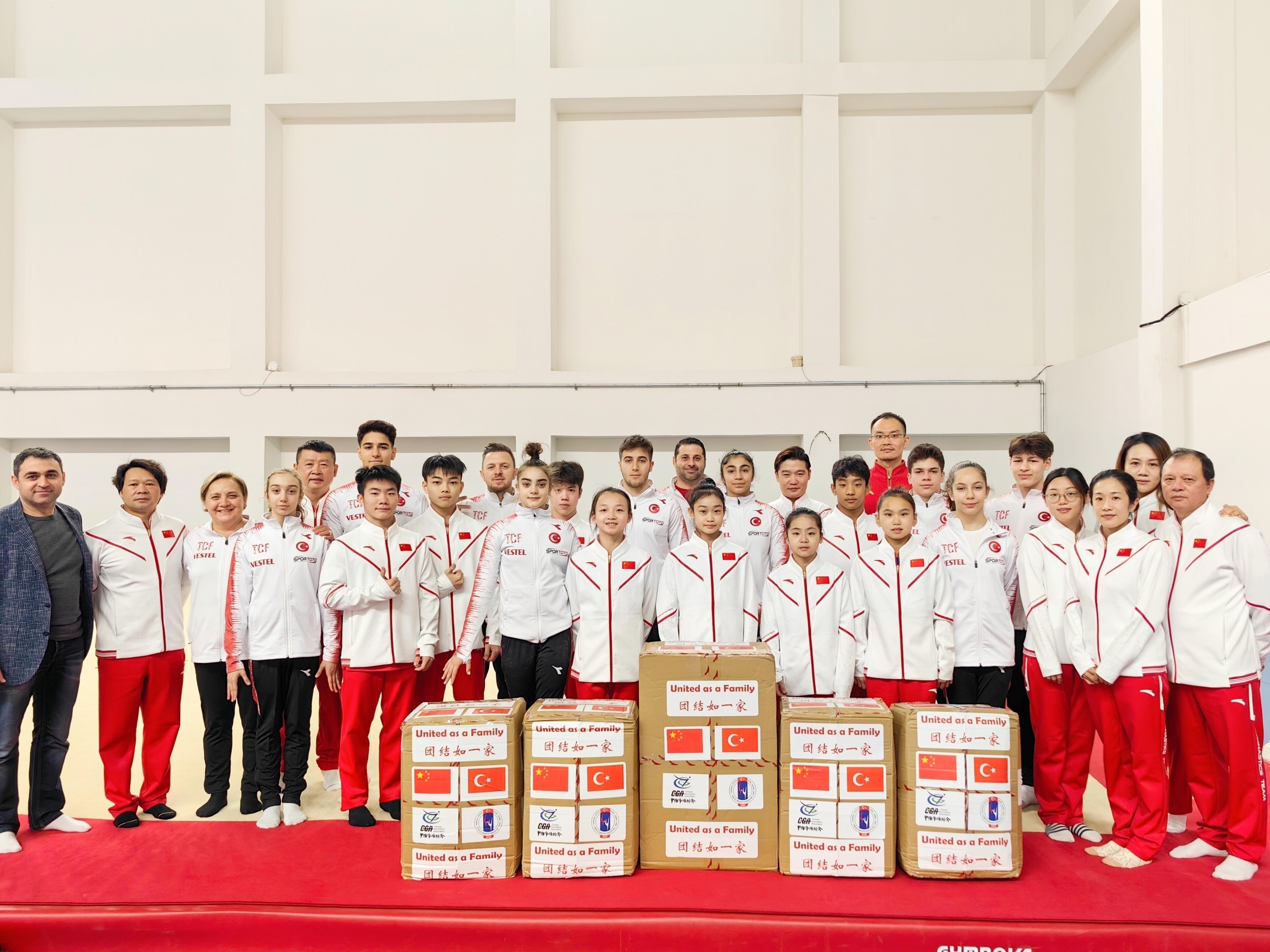 此次參賽,中國奧委會主席高志丹、中國體操協會主席繆仲一在叮囑隊伍安全參賽的同時,也爲土耳其受災地區的體操俱樂部提供包括訓練服、護具、運動鞋等共計5箱80公斤的物資,由世青賽參賽隊伍帶到土耳其捐贈給土耳其體操協會,希望能夠幫助受災地區的教練員和運動員早日恢復訓練。
