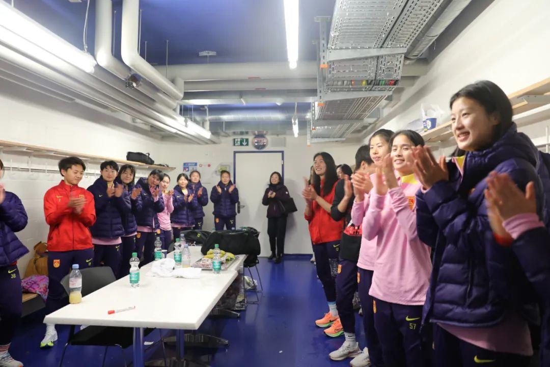 比賽結束後,王大使偕使領館主要領導看望中國女足隊員。王大使首先代表駐瑞士使領館歡迎中國女足來瑞訓練、比賽。王大使高度肯定女足隊員本場比賽的精彩表現,鼓勵大家繼續刻苦訓練、奮勇拼搏,預祝中國女足在今年的世界盃賽上取得好成績。