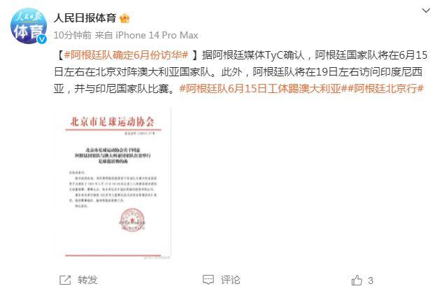 據阿根廷媒體TyC確認,阿根廷國家隊將在6月15日左右在北京對陣澳大利亞國家隊。此外,阿根廷隊將在19日左右訪問印度尼西亞,並與印尼國家隊比賽。