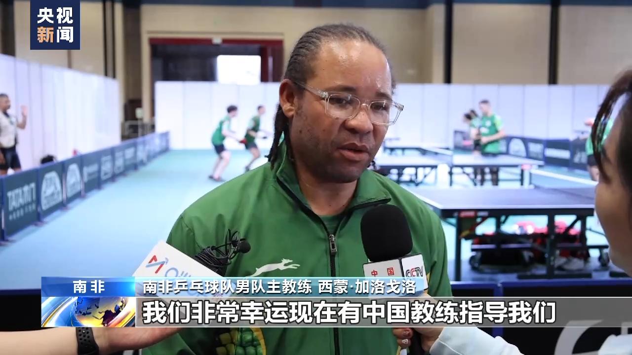 南非乒乓球隊男隊主教練 西蒙·加洛戈洛:我們非常幸運現在有中國教練指導我們,我們從中國教練那裏學到了很多東西。我希望他們的指導時間能更長。