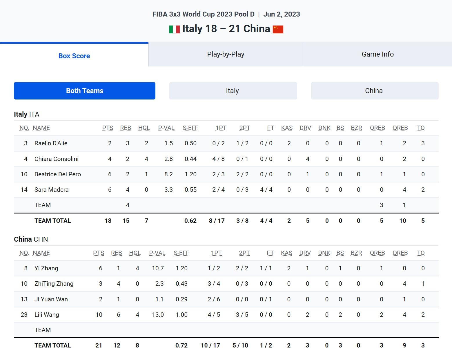 北京時間6月2日晚,中國三人女籃在三人籃球世界盃D組比賽中,以21:18戰勝意大利隊。就此,中國三人女籃在小組賽中四戰全勝,以排名第一的成績晉級世界盃八強。