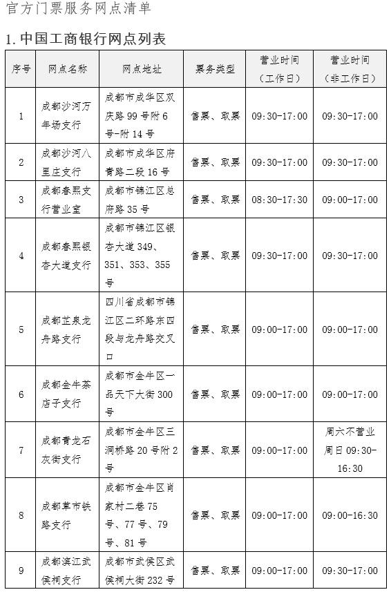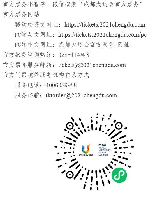 同時,爲提升公衆的購票、取票便捷度,成都大運會唯一銀行類官方合作伙伴中國工商銀行及綜合信息類獨家官方合作伙伴中國電信將在遍佈成都市全域的50餘家官方門票服務網點爲公衆提供高品質的線下購票、取票及票務諮詢服務。