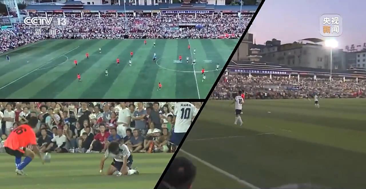 頭球、吊射、世界波、腳後跟進球……被稱爲貴州“村超”的榕江(三寶侗寨)和美鄉村足球超級聯賽開賽以來,出現了許多精彩進球。足球場上的奮力對抗,加上場外上萬名觀衆齊聲吶喊的氛圍,讓人一時間恍惚,是否來到了世界級足球聯賽的現場。
