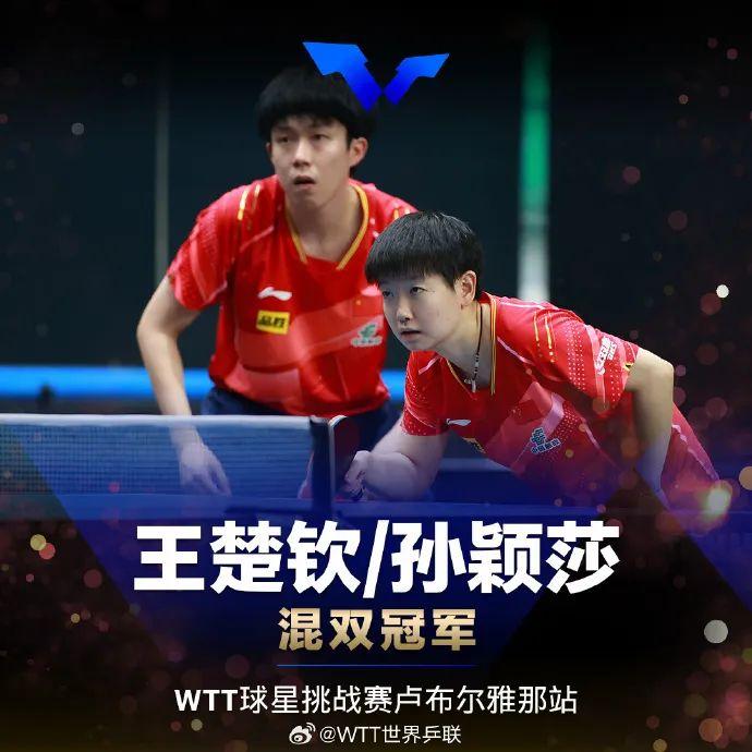 此前,王楚欽/孫穎莎奪得混雙冠軍
