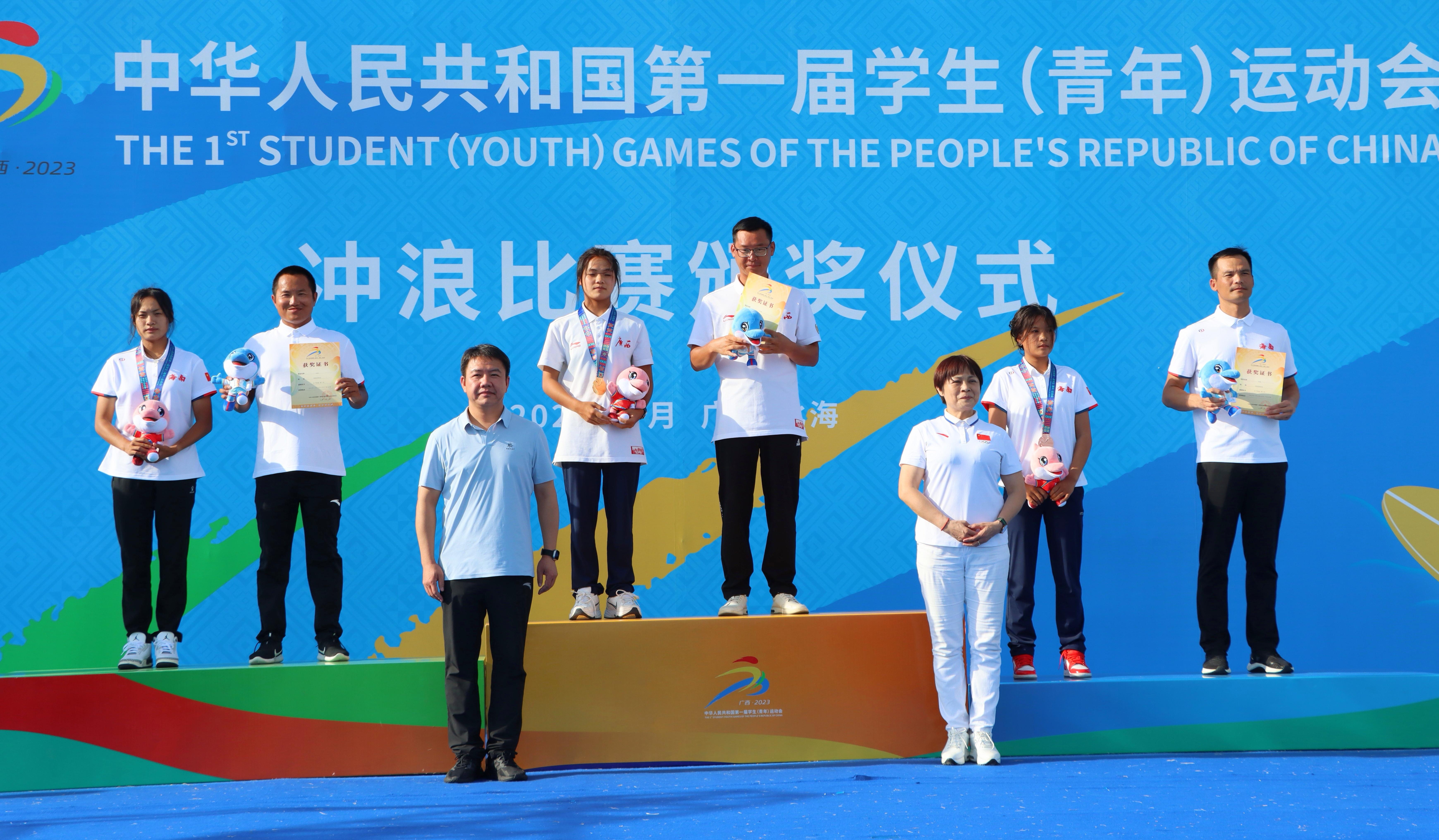 當天下午,第一屆全國學生(青年)運動會執行委員會在銀灘一號國際會議中心頒獎廣場舉行了頒獎儀式,爲獲得衝浪比賽男女短板項目相關獎項的運動員頒發獎牌和吉祥物。此外,北海衝浪隊、太原衝浪隊獲得體育道德風尚獎。