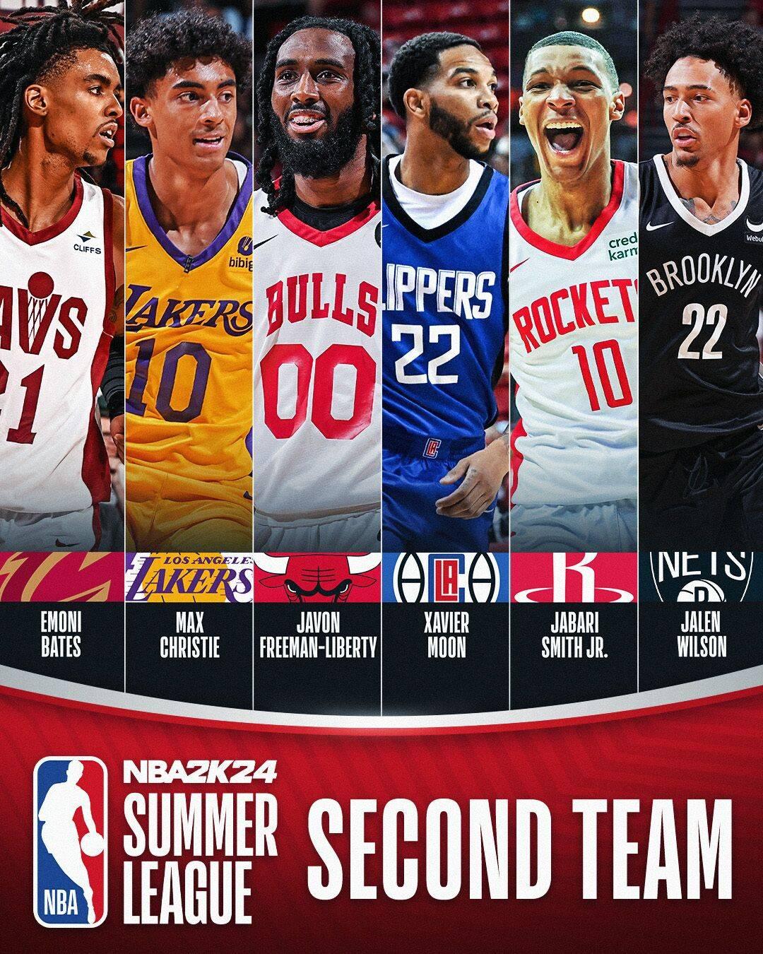 最佳陣容二陣:埃莫尼-貝茨(騎士)、馬克斯-克里斯蒂(湖人)、傑旺-弗里曼-利伯蒂(公牛)、澤維爾-穆恩(快船)、小賈巴里-史密斯(火箭)、杰倫-威爾遜(籃網)。