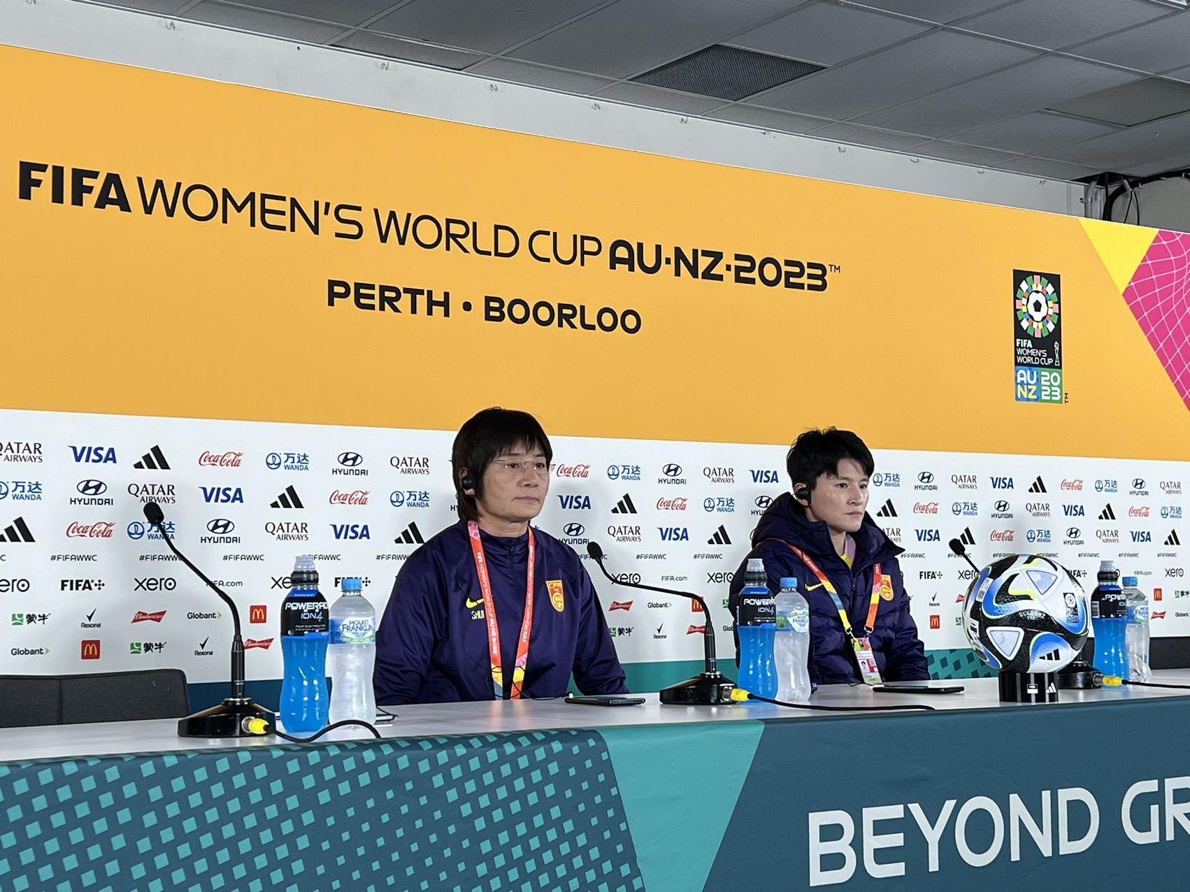 21日,中國女足在珀斯矩形體育場舉行了對陣丹麥隊前的新聞發佈會,主教練水慶霞表示,目前全隊沒有傷病,“我們已經做好了準備,到時候場上見”。