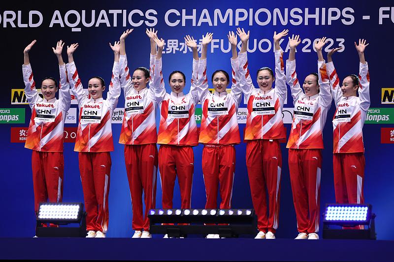 7月21日晚,中國花遊隊終於收穫了她們在2023福岡游泳世錦賽上的第二金。在當晚進行的花遊集體自由自選決賽中,中國隊以329.1687分奪冠,成功衛冕,也爲中國代表團拿下本屆大賽的第13塊金牌。