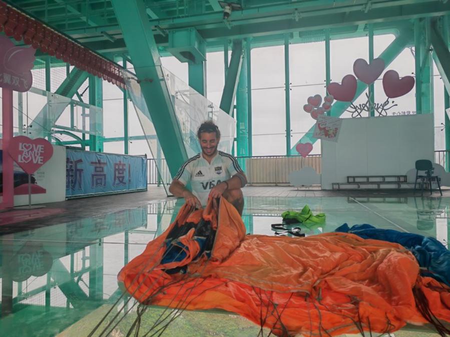 9月29日,意大利選手比多吉亞在整理飛行裝備。新華社記者 吳思 攝