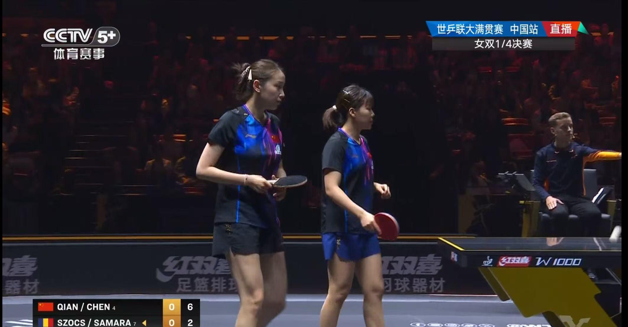 WTT中國大滿貫女雙1/4決賽,陳幸同/錢天一3-0(11-5、11-4、11-7)戰勝羅馬尼亞組合薩馬拉/斯佐科斯,晉級女雙四強。下一輪,她們將面對王曼昱/蒯曼。
