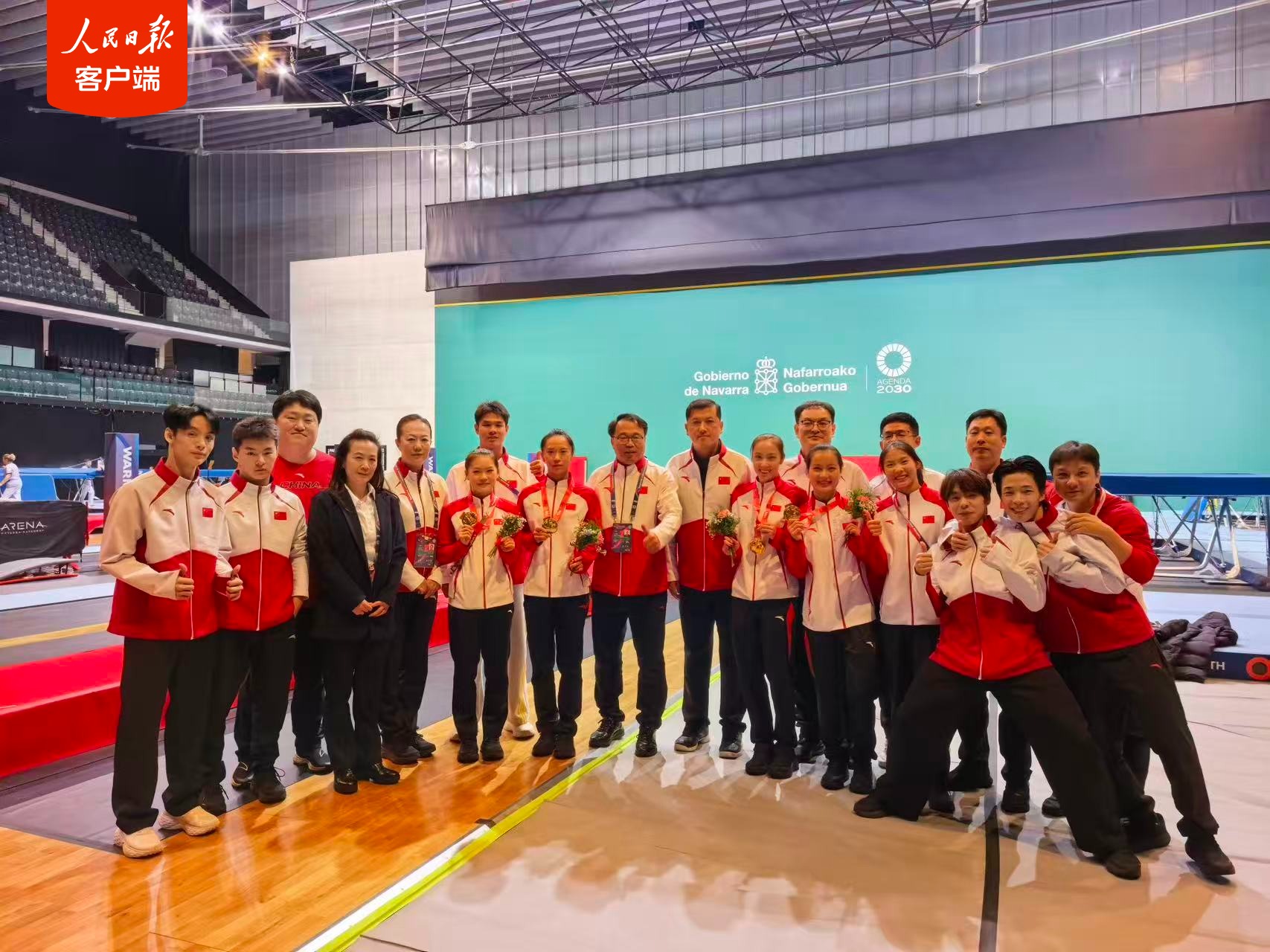 當地時間11月8日,在西班牙潘普洛納舉行的第38屆世界蹦牀錦標賽中,由胡譯乘、範心怡、邱錚和朱雪瑩組成的中國隊以總成績24分奪得女子網上團體冠軍。
