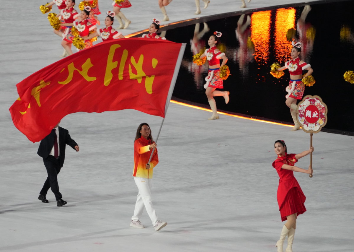 全運會開幕式,湖北代表團入場,鄭欽文擔任旗手。