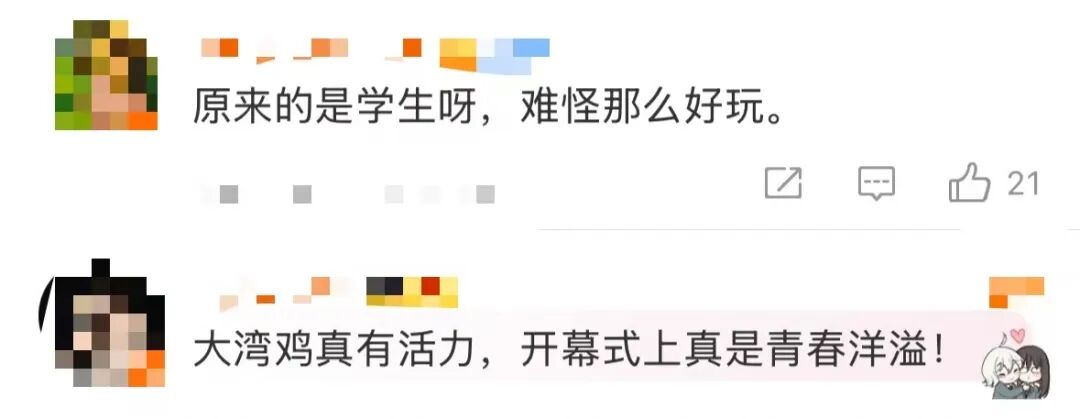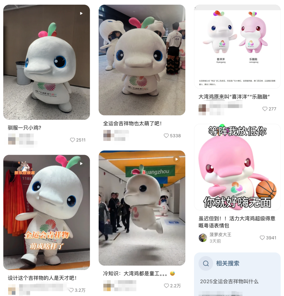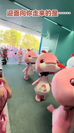 據媒體報道,“大灣雞” 的玩偶扮演者均爲當地武校00後學生。爲精準呈現吉祥物的靈動,他們提前近5個月投入專項訓練,動作超2000次,憑藉紮實的武術功底和堅持,如今“武校少年”蛻變成“國民萌寵”。