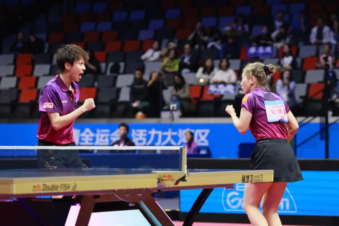 11月14日,第十五屆全國運動會乒乓球混合雙打決賽上的林高遠和劉詩雯。