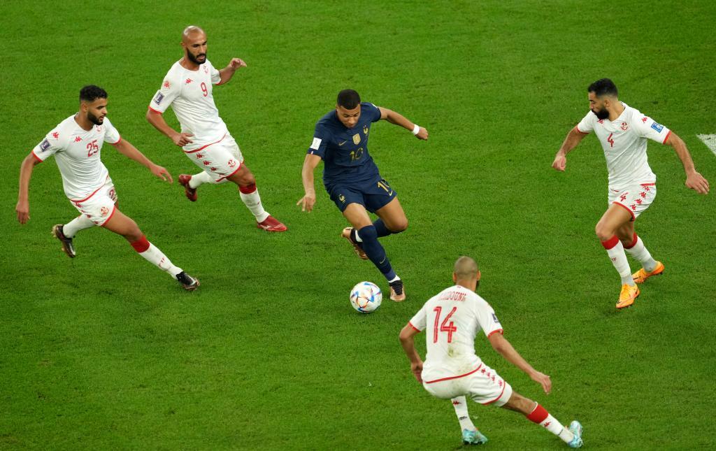 丟球后的法國隊此後接連換上姆巴佩、格列茲曼、登貝萊等主力加強進攻,突尼斯隊則全線退防。第89分鐘,姆巴佩在左路底線連過兩人後射門,皮球被突尼斯門將艾門·達門飛身撲出。補時最後時刻,格列茲曼在禁區內搶射打入一球,但主裁判經過視頻助理裁判(VAR)回放判定越位在先,法國隊絕平進球被判無效。
