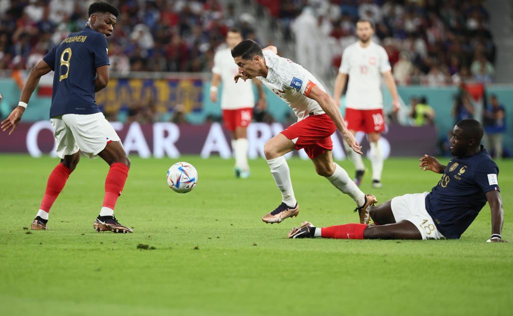 此役開場後法國隊很快佔據主動,姆巴佩左路突破犀利,連續造成波蘭門前險情。第13分鐘,瓊阿梅尼遠射“敲山震虎”,被波蘭門將什琴斯尼化解。