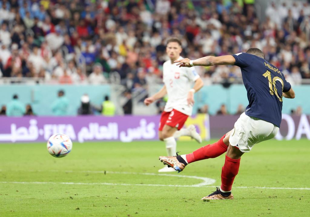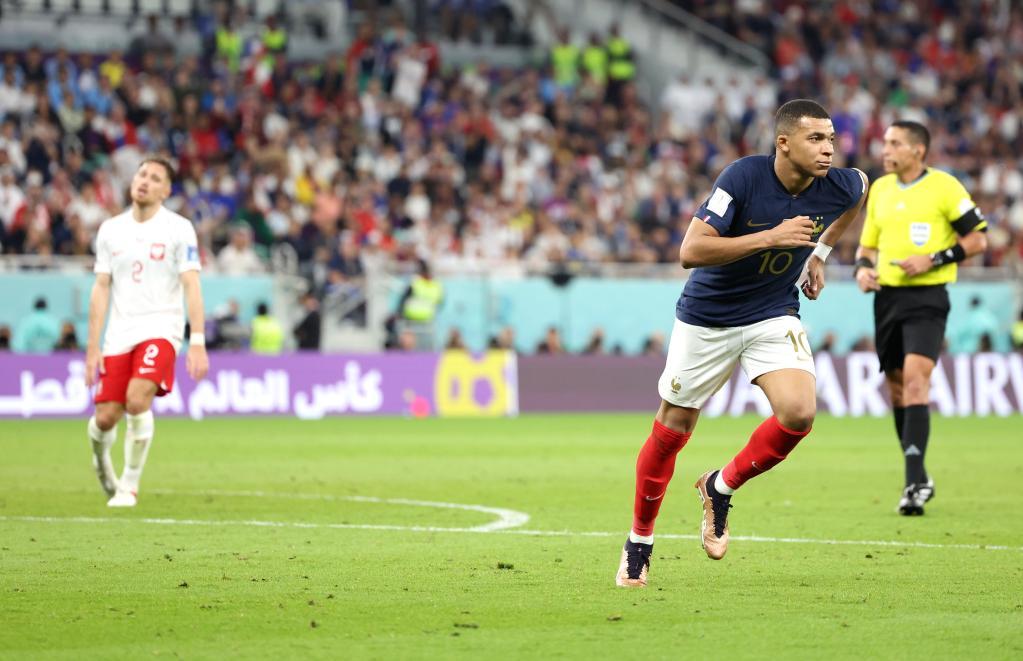新華社多哈12月4日電(記者王浩宇、肖世堯、趙建通)法國頭號球星姆巴佩在4日的卡塔爾世界盃16強賽中踢出“球王級”表現,他打入兩球並助攻一球,幫助衛冕冠軍法國隊以3:1擊敗波蘭隊,順利晉級四分之一決賽。