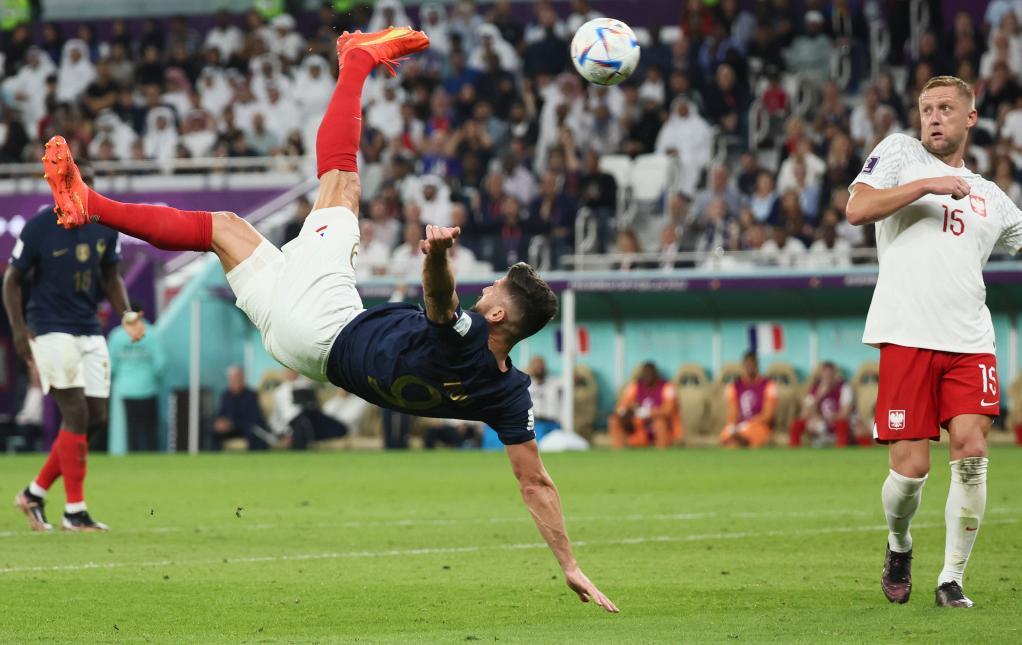 36歲的吉魯本場爲法國隊首開紀錄,他在上半場打入個人在法國隊的第52球,超越傳奇射手亨利成爲法國隊史射手王。