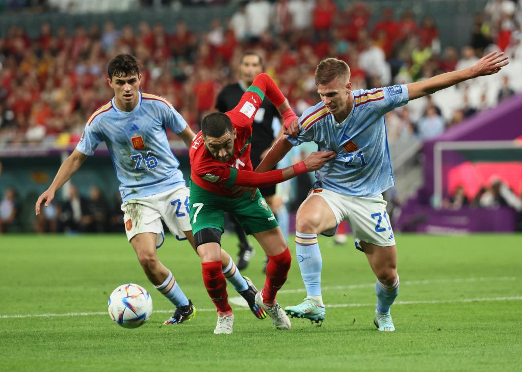 西班牙隊主教練恩裏克在賽前發佈會上曾表示讓球員們練習至少1000個點球,但顯然“鬥牛士”們沒有完成好“家庭作業”。西班牙隊第一個走上罰球點的薩拉維亞是120分鐘比賽結束前特意換上來爲點球大戰做準備的,但他的射門砸在立柱上彈出。而西班牙隊此後出場的索萊爾和布斯克茨也沒能破門,他們的點球都被對方門將布努撲出。摩洛哥隊則除了第三個出場的貝農未得分以外,其他3名出場球員穩穩當當把球罰進,最終3:0將西班牙隊送回了家。