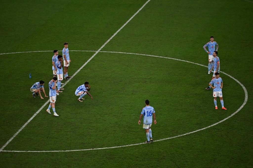 西班牙隊第一個走上罰球點的薩拉維亞是120分鐘比賽結束前特意換上來爲點球大戰做準備的,但他的射門砸在立柱上彈出。而西班牙隊此後出場的索萊爾和布斯克茨也沒能破門,他們的點球都被對方門將布努撲出。摩洛哥隊則除了第三個出場的貝農未得分以外,其他三名出場球員穩穩當當把球罰進,最終3:0將西班牙隊送回了家。