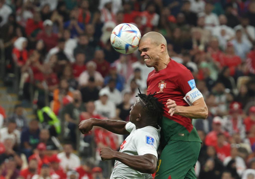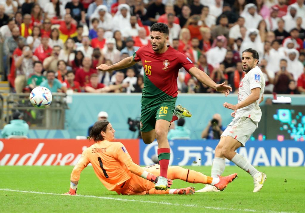 上半場葡萄牙隊的進攻更具威脅。第17分鐘,葡萄牙隊發出界外球,菲利克斯傳入禁區,拉莫斯轉身勁射打破僵局。第33分鐘,布魯諾·費爾南德斯開出角球,中衛佩佩高高躍起,將球頂進,39歲的佩佩成爲世界盃歷史上淘汰賽階段最年長的進球者。瑞士隊在上半場也創造了幾次機會,但無功而返。