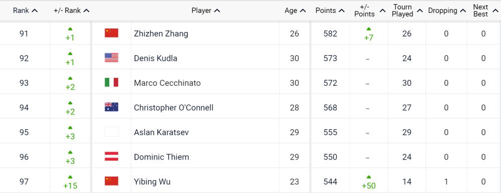 在最新一期的女子網球協會(WTA)單打世界排名中,中國選手張帥列第23位,鄭欽文列第29位,朱琳憑藉華欣站奪冠的表現上升至第41位,王曦雨和王欣瑜也躋身前100名。