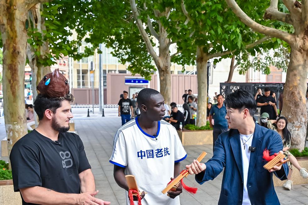 天津站的馬可波羅廣場上,“無語哥”身着印着“中國老鐵”的T恤,與市民同唱意大利民歌;相聲演員曹雲金教他用天津話問“喫嘛好”,重慶站中達人“毒角SHOW”帶他體驗刮痧。這些互動催生了跨越國界的情感共鳴,而“奧力給”“巴適的板”等方言熱詞的傳遞,更成爲連接不同文化的紐帶,生動詮釋了“幽默無國界”的內涵。