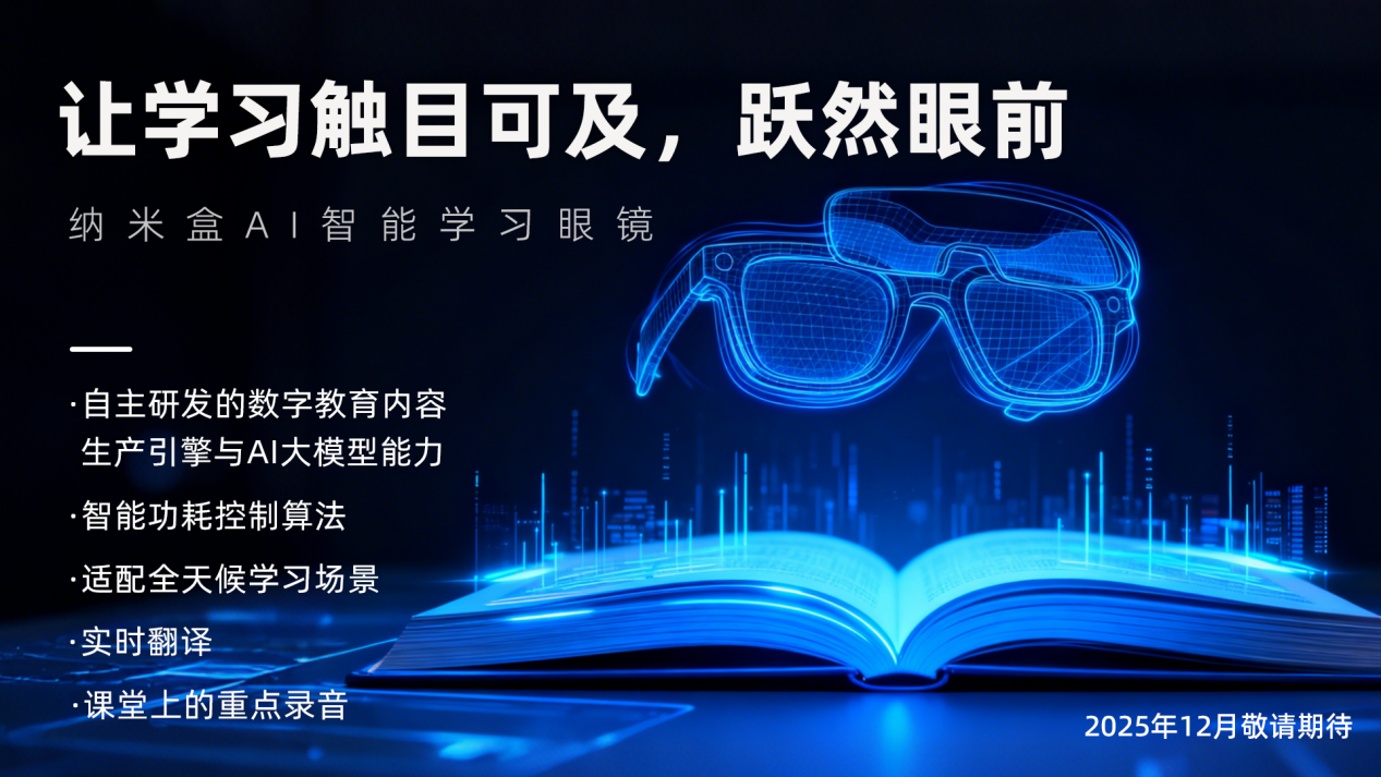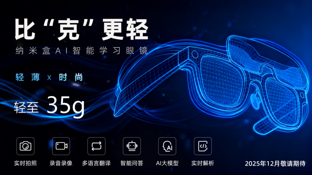 “當前智能眼鏡市場正從技術展示邁向場景深耕,教育領域的專業化需求尤爲突出。”行業分析指出,納米盒此次推出全球首款AI智能學習眼鏡,是在親子學習大屏之後,對“無邊界學習”生態的又一次關鍵佈局。隨着12月亮相,這款“比‘克’更輕,比‘綠光’更多彩”的學習裝備,有望爲智慧教育市場注入新活力,讓“學習觸目可及”的理念照進現實。(田心)