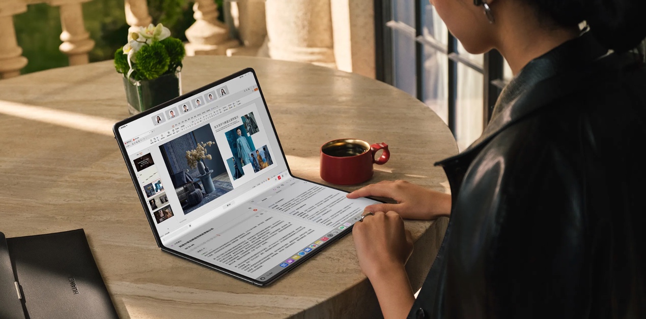 以華爲MateBook Fold 非凡大師爲例,其18英寸摺疊巨幕不僅帶來沉浸式視覺體驗,更實現了上下屏獨立操作、橫豎屏自適應旋轉。用戶可在上屏瀏覽資料、下屏撰寫報告,或在會議中一邊展示PPT一邊用手寫筆批註——這種“一機多能”的形態創新,正是高端商務用戶所渴求的移動辦公解決方案。