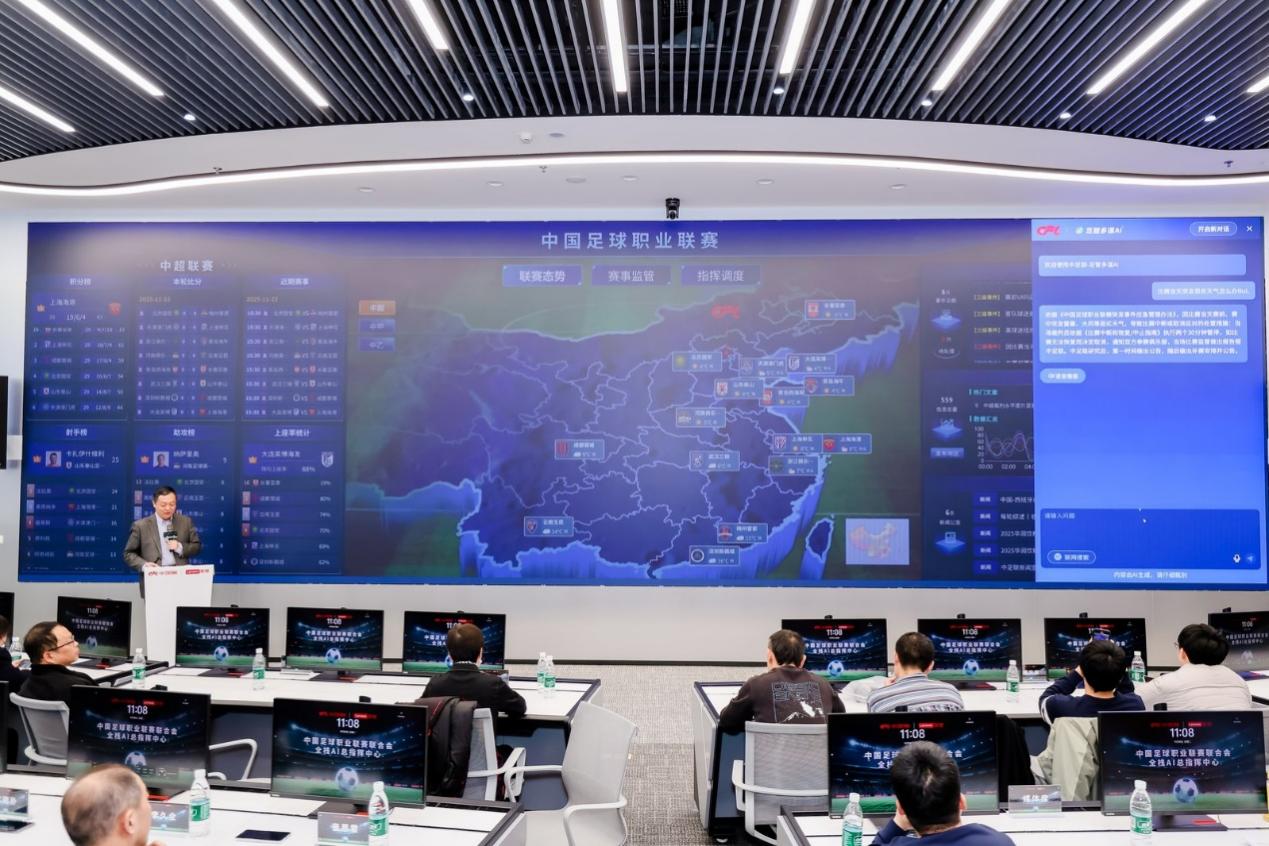 此次聯想與中足聯的合作,正是對國家戰略的快速響應與實踐落地。作爲首次亮相的核心成果,全棧AI總指揮中心基於“大屏可視化+智能體交互”的創新模式,構建起覆蓋賽事態勢、監管、調度等全流程的智能服務體系。