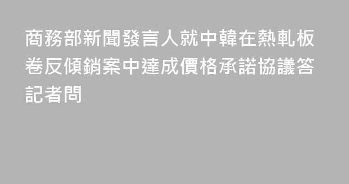 有記者問:近日,在韓國對中國的熱軋板卷反傾銷案終裁中,中韓雙方達成價格承諾協議,請問發言人對此有何評論?答:2026年2月23日,韓國在對中國的熱軋板卷反傾銷案終裁中,宣佈與中方就價格承諾方案達成一致。中韓業界對此表示歡迎,認爲以價格承諾替代反傾銷稅符合兩國產業利益,有助於增強中韓鋼鐵貿易的穩定......