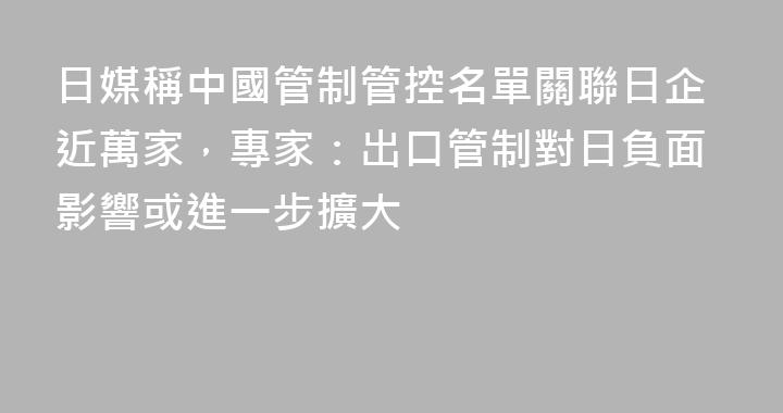 中國商務部2月24日將20家日本實體列入出口管制管控名單、20家列入關註名單後,日本各界擔憂持續升溫。據《日本經濟新聞》12日援引東京商工調查公司數據,管制管控名單內20家日本實體關聯其國內9538家商業夥伴,關註名單內20家實體的國內商業夥伴達39004家,引發外界對影響擴大的擔憂。東京商......