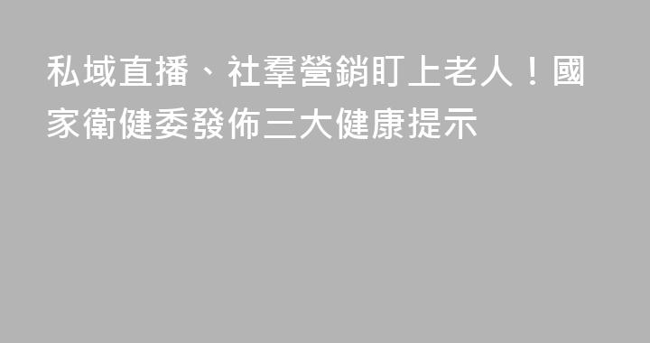 4月9日,國家衛生健康委召開“時令節氣與健康”發佈會。國家衛生健康委新聞發言人胡強強表示,近期,一些私域直播、社羣營銷打着“健康講座”“專家直播”等旗號,專門針對老年人進行保健產品等推銷。有的由“演員”假扮成“醫學專家”按稿宣講,有的誇大、篡改保健產品的功效從而高價銷售,還有的通過送禮品、......