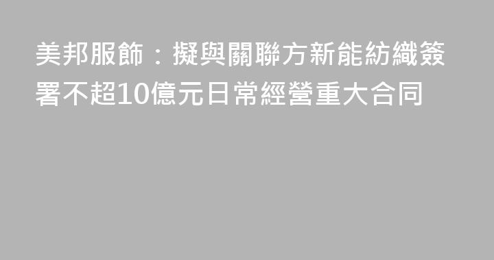 3月31日,美邦服飾發佈公告稱,2026年度,公司與關聯方貴州美邦新能紡織服裝科技有限公司(以下簡稱“新能紡織”)自願達成合作關係,由公司或其子公司向新能紡織採購貨物,預計發生的關聯交易金額爲不超過10億元,若在合同約定期間內觸及上限金額,經雙方董事會或股東會審議通過後,可另行再籤協議提高合......