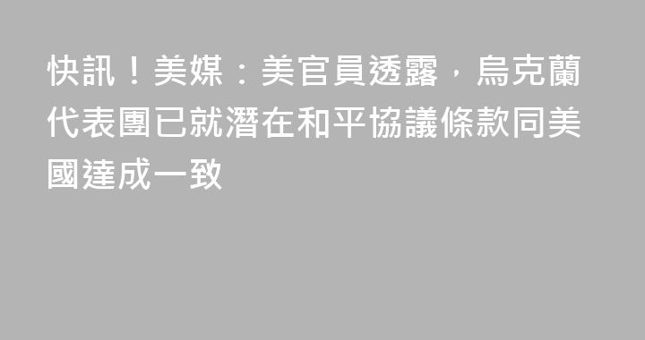 據美國廣播公司(ABC)等媒體消息,一位美國官員透露,烏克蘭代表團已就潛在和平協議條款同美國達成一致。“烏克蘭方面已同意這份和平協議,”該美方官員表示,“雖然還剩部分細節有待磋商,但烏方已同意和平協議。”美國哥倫比亞廣播公司(CBS)說,針對上述說法,俄方尚未表態。據多家美國媒體報道,美國和......