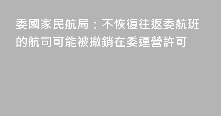 當地時間24日委內瑞拉國家民航局(INAC)警告國際航空公司必須在48小時內恢復航班,否則可能將撤銷其在該國領空的運營許可。當天,委內瑞拉交通部長貝拉斯克斯在委國家民航局與多家國際及國內航空公司就確保該國航空運輸的連續性和正常性進行協調。國際航空運輸協會(IATA)呼籲委政府加強合作並澄......