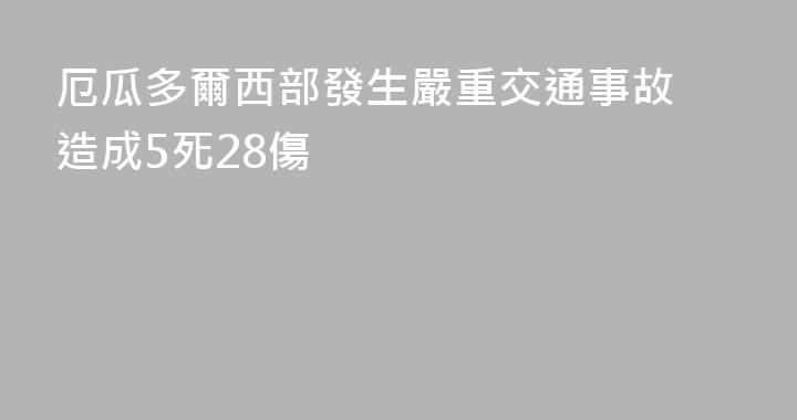 當地時間12日,厄瓜多爾西部聖埃倫娜省發生一起嚴重交通事故,造成5人死亡,28人受傷。事發時一輛省際巴士和一輛小汽車相撞,汽車衝出道路。目前傷者已經被送往醫院救治。(總檯記者鄧雪梅)......