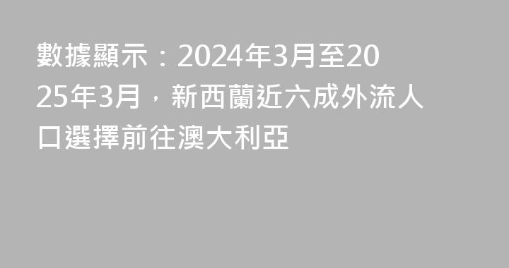 據澳大利亞廣播公司22日報道,最新數據顯示,新西蘭正面臨近年來最顯著的一波青年人口流失潮,許多年輕人選擇前往澳大利亞尋求更好的生活與職業發展。根據新西蘭統計局數據,2024年9月至2025年9月,共有近7.3萬名新西蘭公民離境,同比增加8%,其中近四成是18至30歲的年輕人,離境者的中位......