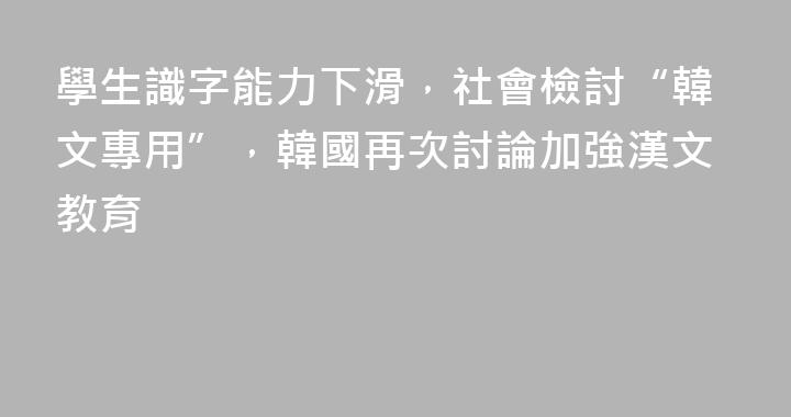 綜合韓聯社、《韓國先驅報》等韓媒10日報道,面對學生識字能力持續下滑的現狀,韓國政府正重新審視漢字教育的作用。韓國國家教育委員會表示,將研究加強漢文教育的多種方案,包括在教材中加入漢字註釋,以此提升學生閱讀理解能力。韓國國家教育委員會讀寫能力特別委員會委員長金京會9日表示,討論將主要圍繞閱......