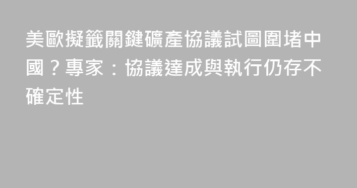 據彭博社10日報道,歐盟與美國正接近達成一項關鍵礦產合作協議,試圖打破中國在關鍵礦產供應上的主導地位。報道披露的“行動計劃”草案及非約束性諒解備忘錄顯示,這份潛在協議將涵蓋關鍵礦產全價值鏈及全生命週期管理。爲扶持非中國供應商,協議擬推出最低價格保障等激勵措施,同時推動雙方在標準制定、投資......