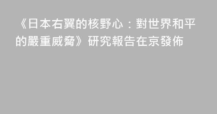 新華社北京1月8日電(記者陸君鈺)《日本右翼的核野心:對世界和平的嚴重威脅》研究報告8日上午在京發佈。報告由中國軍控與裁軍協會與中核戰略規劃研究總院聯合發佈,呼籲國際社會高度警惕日本右翼勢力日益膨脹的核野心和日本軍國主義復闢的危險動向,共同維護戰後國際秩序和國際核不擴散體系。中國軍控與裁軍......