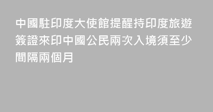 近日,多名持印度旅遊簽證來印中國公民因兩次入境印度時間間隔未滿2個月,被印方拒絕入境並勸返。根據印方有關規定,持旅遊簽證入境印度,兩次入境之間須至少間隔2個月。印方所發旅遊簽證並未加註該項規定,但如違反,入境時將面臨被退運勸返的風險。中國駐印度使領館特別提醒,請持旅遊簽證來印中國公民高度......