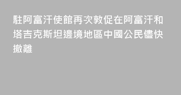 阿富汗和塔吉克斯坦邊境地區安全形勢複雜嚴峻,去年11月接連發生中國公民遇襲事件,造成重大人員傷亡,不排除再次發生針對中國企業和公民的襲擊事件。近日阿富汗巴達赫尚和塔哈爾省多次發生涉及採金企業的安全事件,造成當地多人死傷、機械設備損毀。中國駐阿富汗使館再次敦促上述地區的中國企業和公民密切關注安......