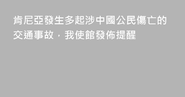 近期,肯尼亞發生多起涉中國公民傷亡的交通事故,駐肯尼亞使館提醒中國公民和遊客注意交通出行安全。儘量避免獨自戶外步行,謹慎選擇摩托車、自行車出行。自駕車輛出行務必提高風險防範意識,時刻注意交通安全:一、遵守當地交通規則。肯爲右舵靠左行駛,與國內駕駛方向相反。注意道路標誌和指示燈,文明駕駛。......