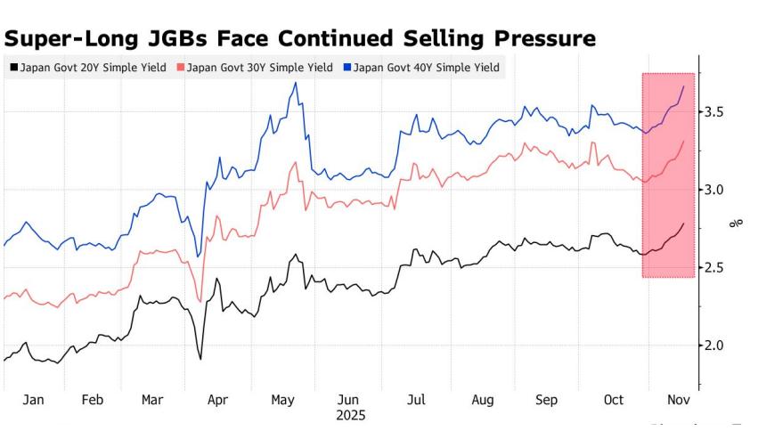 據美國彭博社報道,由於投資者愈發擔憂日本首相高市早苗所提出的一項大規模經濟刺激計劃將損害日本公共財政,日本長期國債價格當地時間18日進一步下跌。報道稱,日本40年期國債收益率上漲了8個基點至3.68%,創下自2007年發行以來的最高水平。同時,日本20年期和30年期國債收益率均上漲至少4......