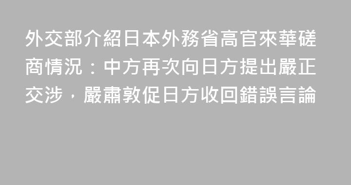 日本外務省亞洲大洋洲局局長金井正彰昨天(17日)起訪華。據日媒報道,在中國期間,他將圍繞日本首相高市早苗涉臺言論與中方進行磋商。今天,外交部亞洲司司長劉勁松與其會面。14時左右,金井正彰一行離開中國外交部。面對媒體提問,他並未給出任何表態。(總檯央視記者孫巖峯黃惠馨曹筱徵)......
