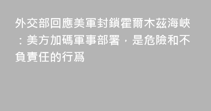 4月14日,外交部發言人郭嘉昆主持例行記者會。有記者就美方封鎖進出伊朗港口船隻一事提問。對此,郭嘉昆表示,在相關方業已達成臨時停火安排的情況下,美方加碼軍事部署,採取定向封鎖行動,只會激化矛盾,加劇局勢緊張,破壞本就脆弱的停火局面,並進一步衝擊海峽通行安全,這是危險和不負責任的行爲。中方認......