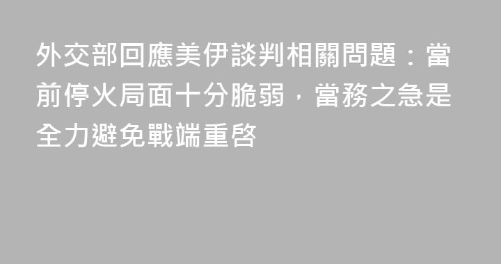 外交部發言人郭嘉昆主持4月14日例行記者會。有記者提問稱,美國副總統萬斯昨日在採訪中表示,現在輪到伊朗邁出恢復談判的下一步。中方對此有何評論?此外,中方認爲推動結束這場戰爭的下一步應當做什麼?郭嘉昆表示,當前停火局面十分脆弱,地區局勢處於關鍵階段,當務之急是全力避免戰端重啓,保持來之不易......