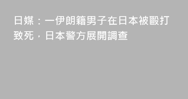 據日本《讀賣新聞》4月4日報道,一名41歲伊朗籍男子4月3日死亡,司法解剖顯示他身受多處外傷。此前有目擊者稱該男子遭多人用鐵管等物品毆打,日本警方正在對案件展開調查。據報道,4月3日,有人發現一名失去意識的男子躺在愛知縣一家醫院門前,該男子隨後被確認死亡。愛知縣警方確認,死者爲伊朗國籍,41歲,......