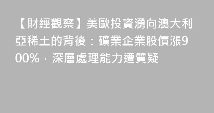 編者的話:澳大利亞稀土產業正迎來前所未有的國際投資熱潮。美澳關鍵礦產供應協議簽署後,澳大利亞多個礦產項目受到美國、歐洲資本的密集關注,股價飆升。一時間,澳大利亞被推向了全球稀土競爭的中心舞臺。然而,資本聚光燈下的澳稀土產業也暴露出不少競爭力隱憂。行業專家告訴《環球時報》記者,部分西方國家......